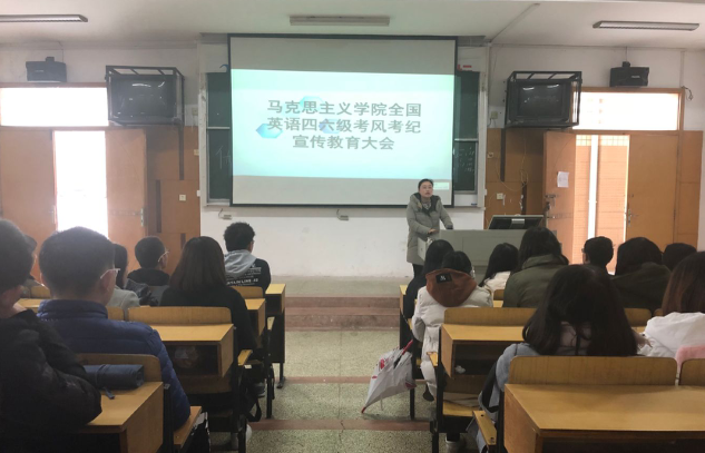 为了进一步加强同学们英语四六级考试的考风考纪,构建诚信校园,倡导同学们“端正考风、严肃考纪、文明答题、诚信应考”。2018年12月5日中午11:45,公司在博学楼B02教室召开了williamhill中文官网全国英语四六级考风考纪宣传教育大会。本次大会活动由公司党总支副书记席书记主持开展,本院此次参加四六级考试的全体员工参加了此次会议。