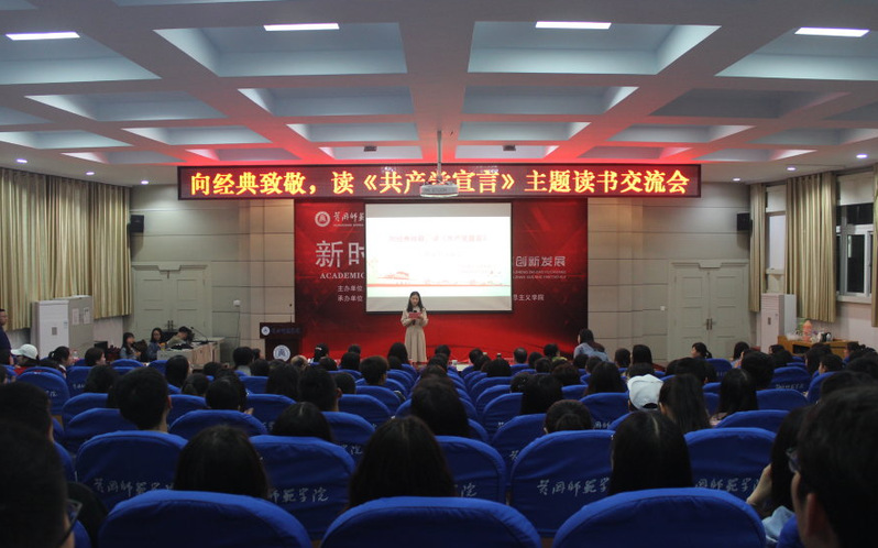 为进一步倡导多读书、读好书的文明风尚,推进公司文化建设,公司马克思主义读书社于4月22日晚7:10在学术报告厅B03 举办“向经典致敬,读共产党宣言”主题读书交流会。黄冈市团市委副书记涂梦佳应邀到现场进行指导,马克思主义读书社指导老师、williamhill中文官网一二年级员工、校青马班和青协代表以及各公司入党积极分子代表参加了此次读书交流会。