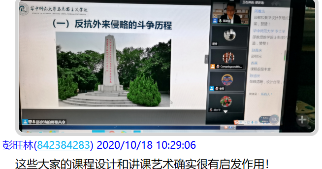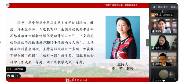 10月18日上午9:00—12:00公司“纲要”教研室教师应邀参加华中师范大学发起的“同课异构、协同共研”《中国近现代史纲要》导论及第一章网络集体备课会。