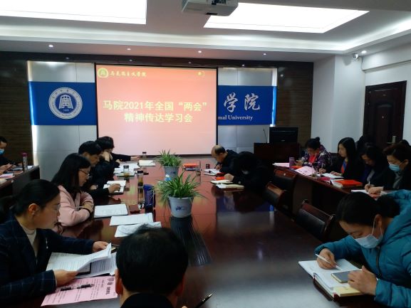 3月18日下午,williamhill中文官网在致远楼305会议室召开全体教职工政治理论学习会,集中学习“两会”精神。会议由党总支书记汪辉主持。