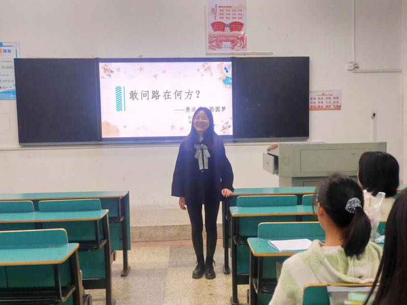 为了帮助同学们明确奋斗目标,增加学习的动力和热情,鼓励同学们勇敢追梦。2021年11月11日晚6点,公司在博学楼120举行了一场主题为“勇追梦,勤圆梦”的主题讲座。本次活动邀请到了公司15级优秀毕业生黄冈中学高中政治教师张燕妮为大家分享经历。