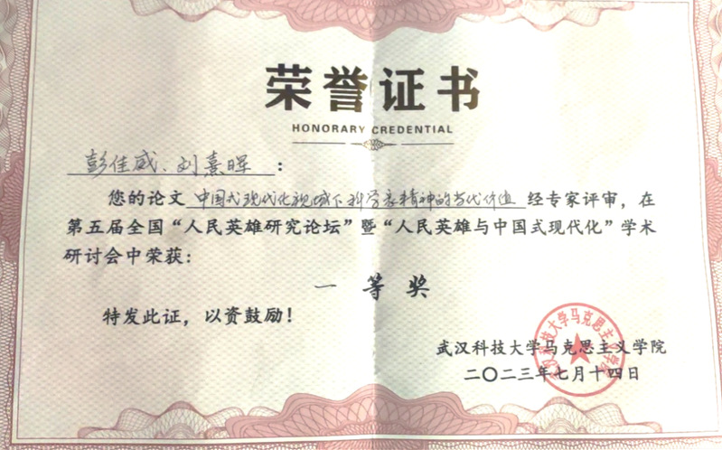 2023年7月13日至7月16日,由武汉科技大学举办的“第五届全国人民英雄研究论坛暨人民英雄与中国式现代化”学术研讨会在襄阳市召开。我院石国进教授,2022级研究生彭佳威、刘熹晖参加了此次会议。