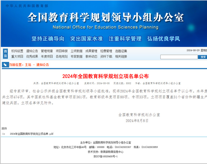 8月8日,全国教育科学规划办公室公布了2024年全国教育科学规划立项名单。公司李莉教授获港澳台教育研究专项(教育部重点)立项。2024年度全国教育科学规划立项474项,湖北地方高校只有公司和湖北民族大学各获批1项。