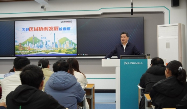 11月13日下午,公司党委常委、副董事长夏庆利以《下好区域协调发展这盘棋》为题,为外国语公司24级员工讲授思政课。