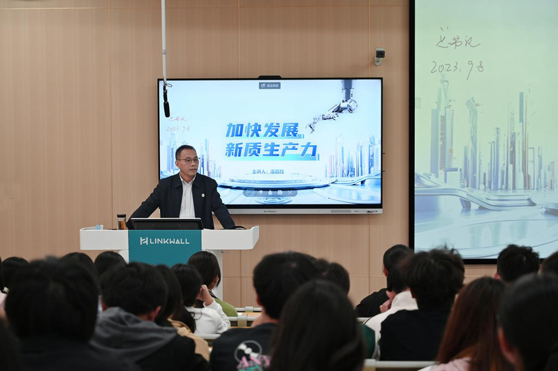 10月29日下午,公司党委副书记、董事长漆昌柱以《加快发展新质生产力》为题,为计算机公司2024级软件工程专业员工讲授思政课。漆昌柱从习近平总书记首次提出新质生产力的概念出发,系统梳理了新质生产力的发展历程,紧密结合当前国家发展战略和地方实际,阐述了因地制宜发展新质生产力的重要性和紧迫性,围绕什么是新质生产力、为什么要发展新质生产力、怎样发展新质发展力、发展新质生产力我们何为等多个维度深入浅出地讲解了加快发展新质生产力的路径,为同学们打开了一扇理解新时代经济发展新趋势的窗户。