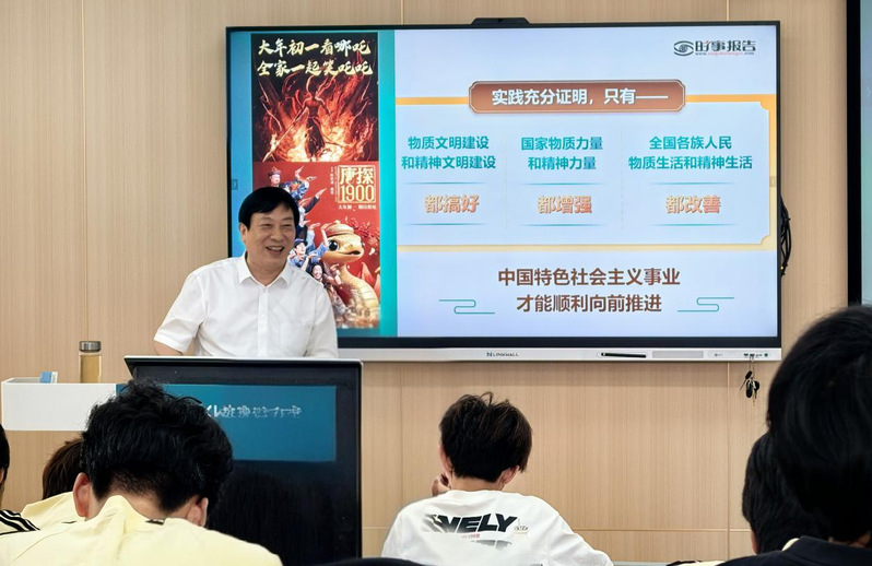 5月14日下午,副董事长马志斌以《从教育大国迈向教育强国》为题,为数学与统计公司应数2024级员工讲授思政课。